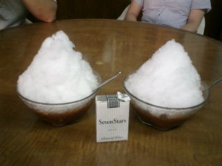 この店の特徴はまずはこのボリューム。でもかき氷はパウダースノーだから口に入った途端、すぐに溶けちゃう。今回10年ぶりに行ったら名物ばあちゃんが居なかった・・会いたかったナ;